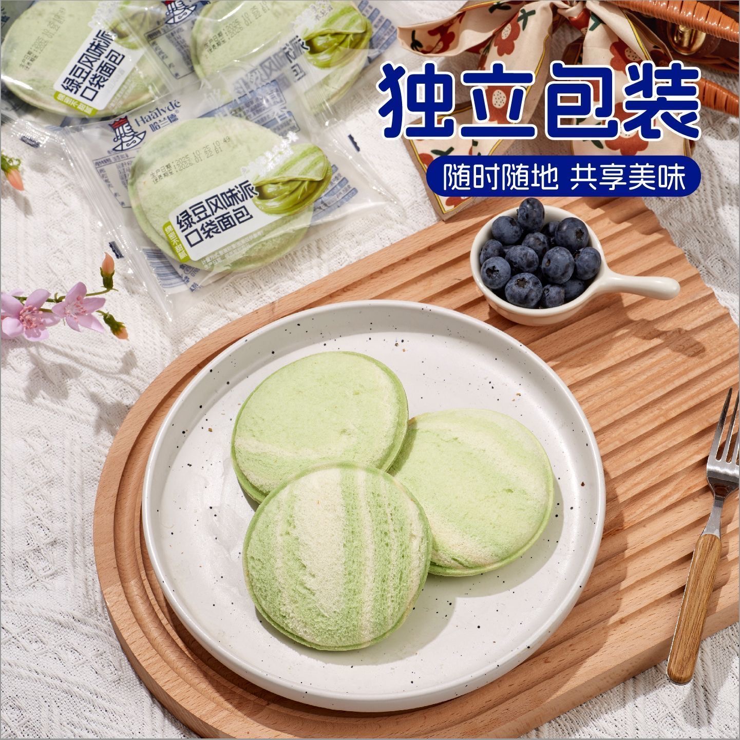 | 2kg散称哈兰德绿豆风味派口袋面包 | |||