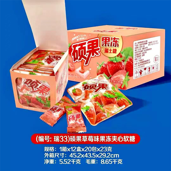 | 23g硕果草莓味果冻夹心软糖*20 | |||